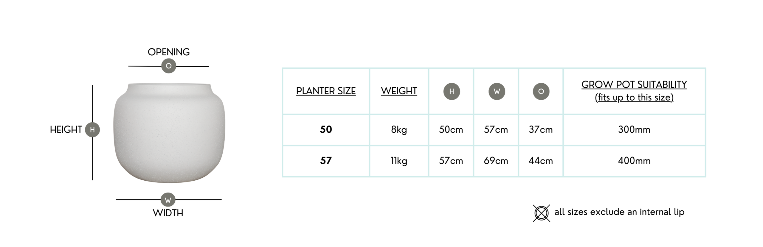 *If using Indoor you will need to use as a cover pot with a bucket or saucer under the growpot as the nature of these pitted planters does lend them slight leakage through these holes – See here for Diagram of Indoor Cover Planter Use
