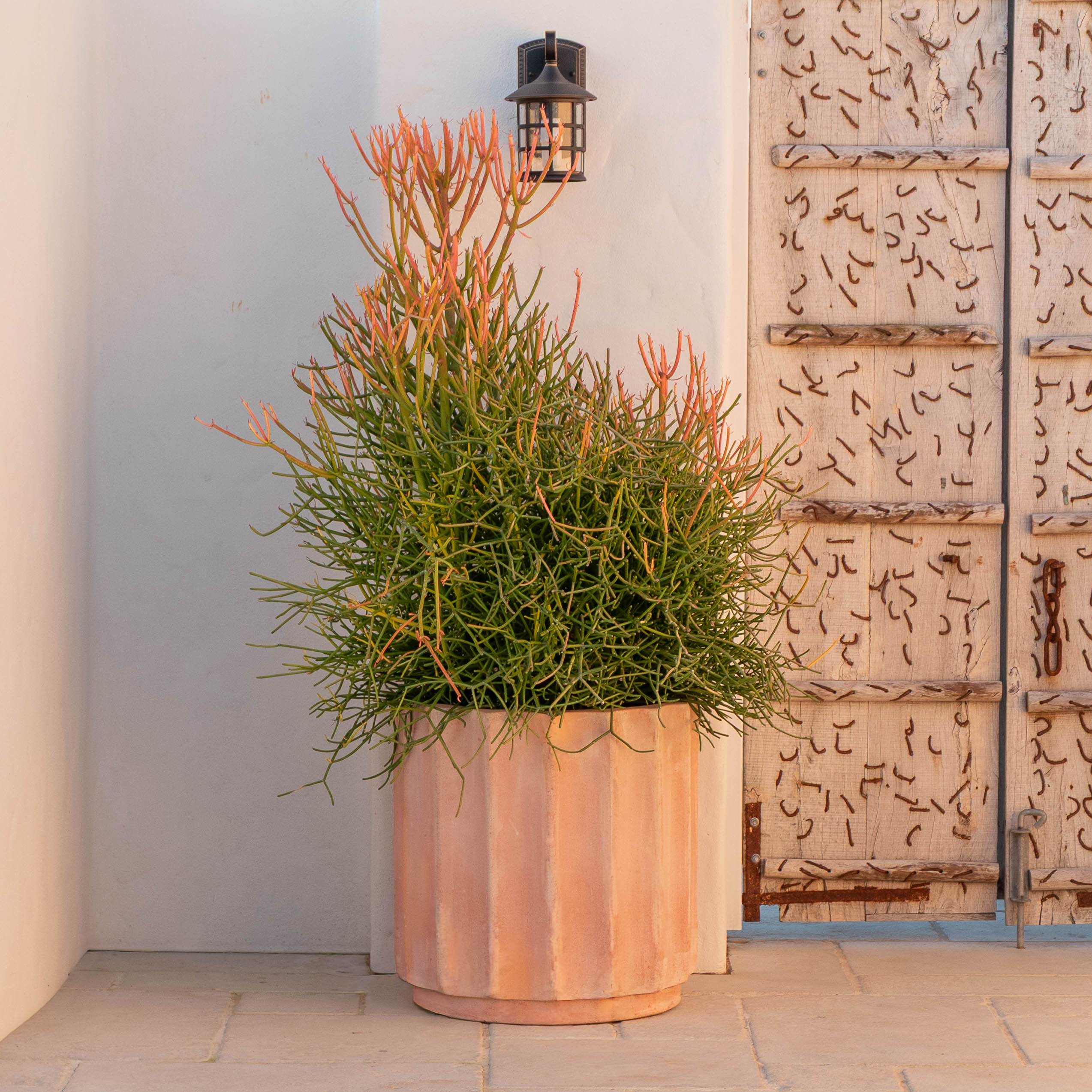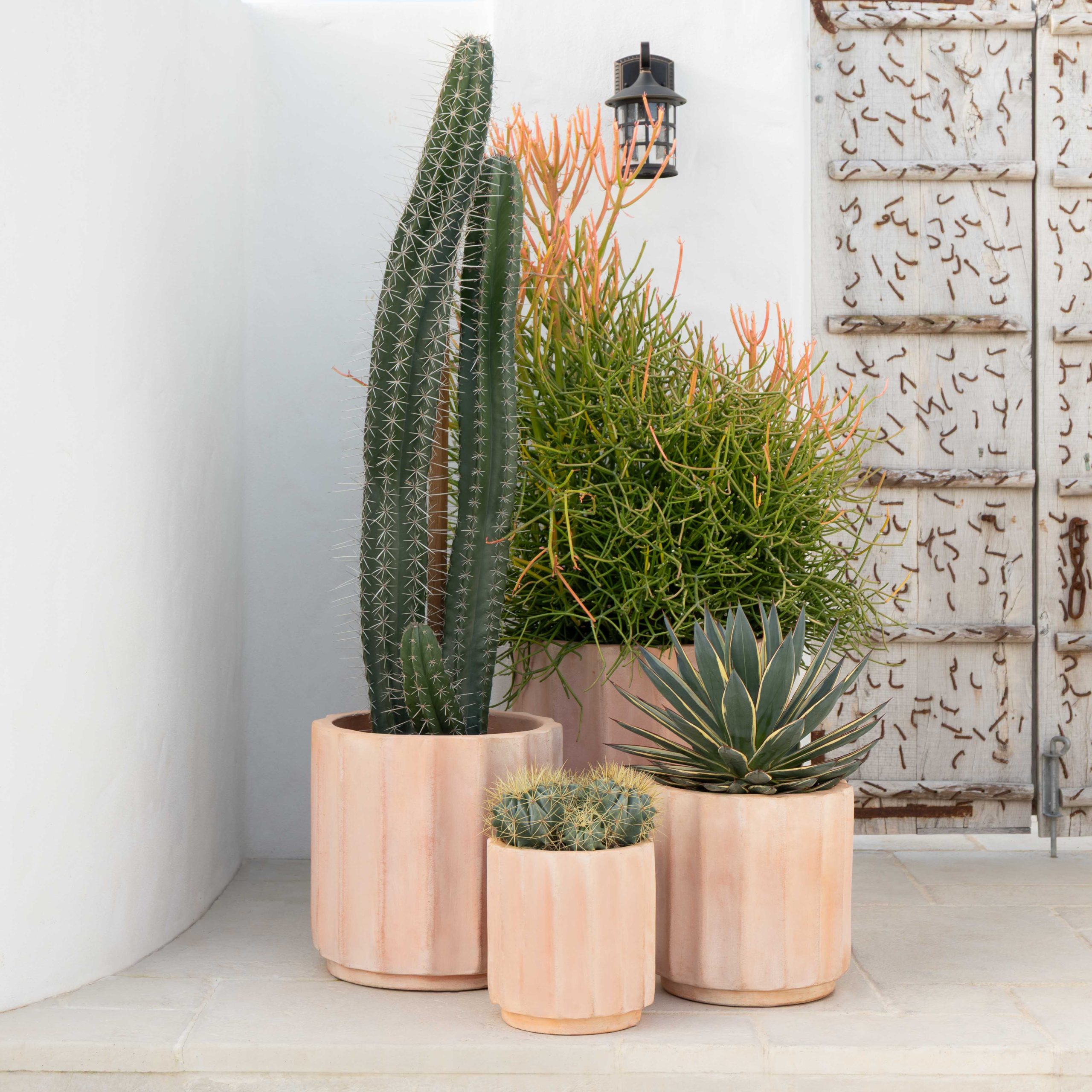 The Calliope Terracotta pots with wide grooved vertical lines are available in four sizes. Perfect outdoors as a feature pot or group filled with succulents or cacti creating a wonderful urban rustic charm.