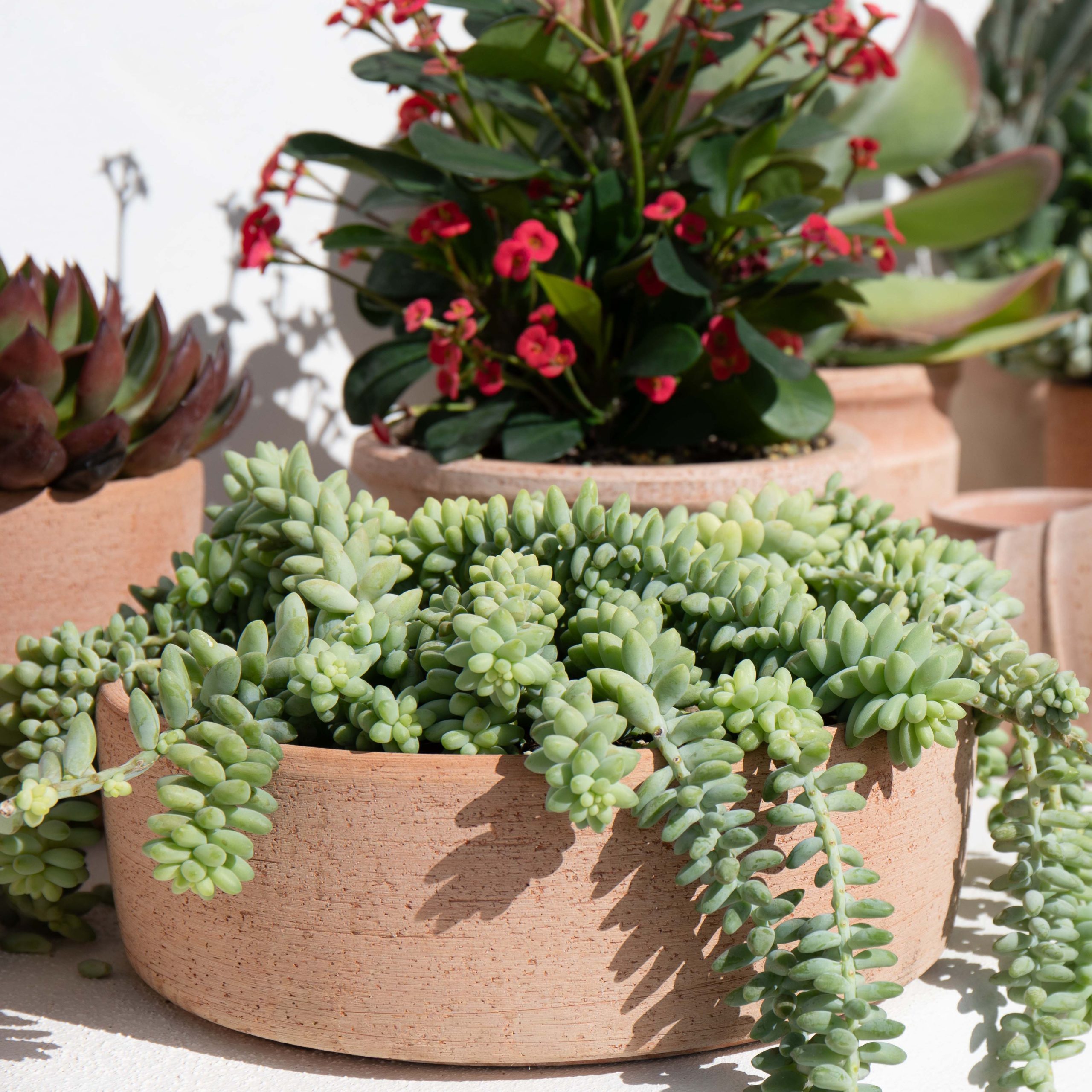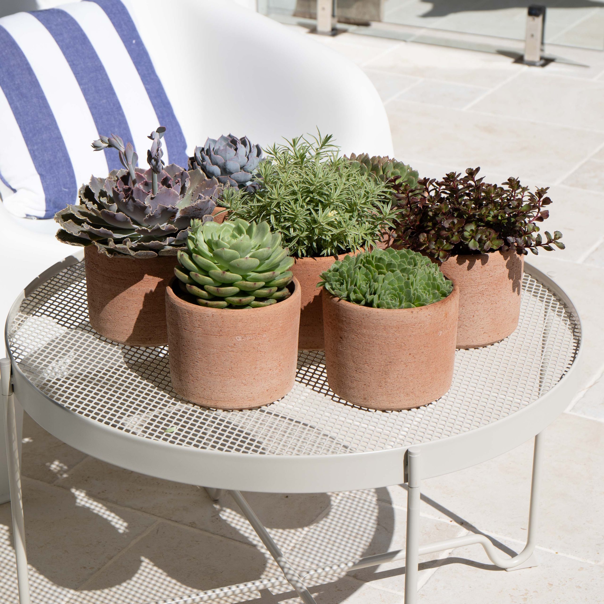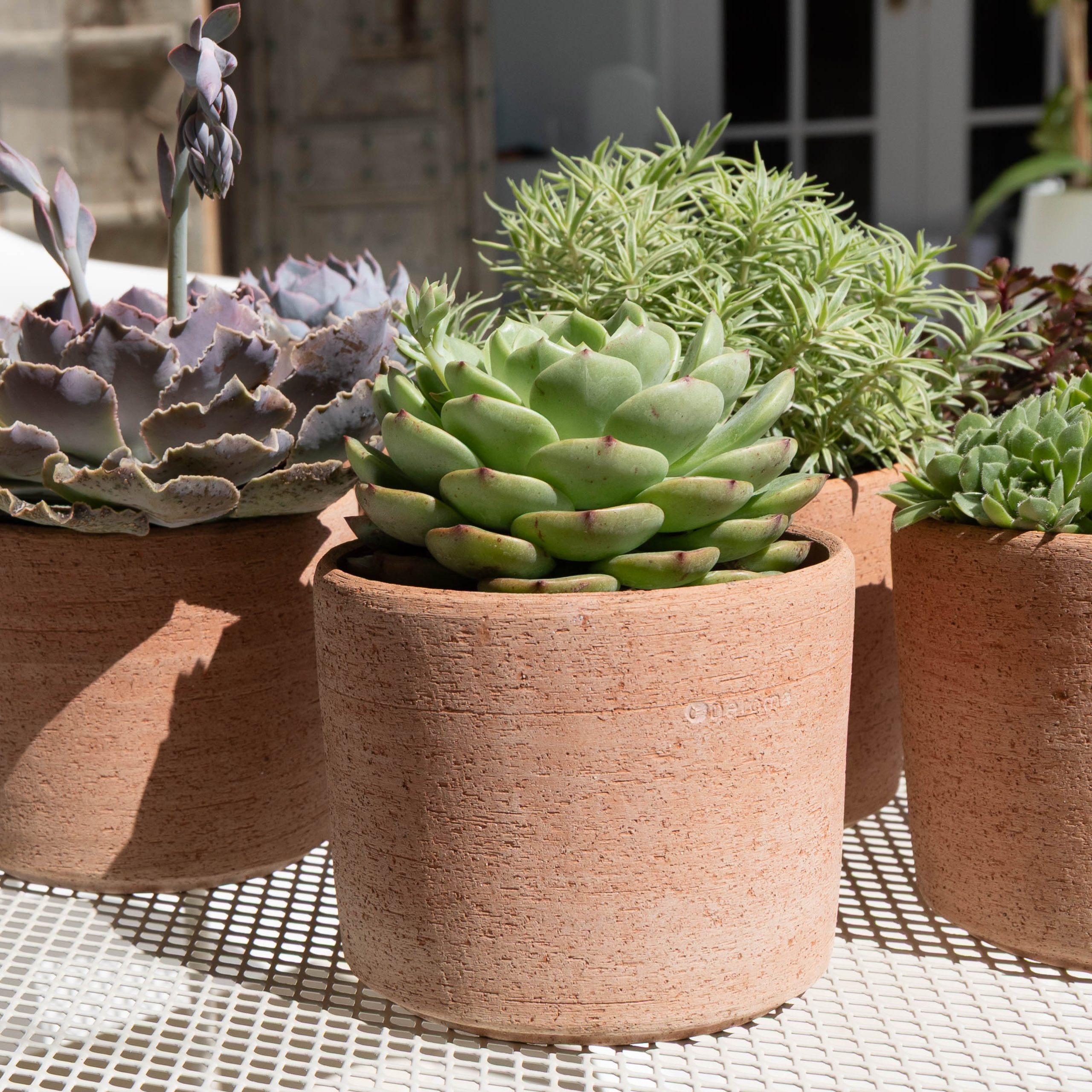 The popular textured Luna terracotta cylinders, bowl and window box are traditionally crafted in Italy out of natural Galestro clay from the hills of Tuscany.