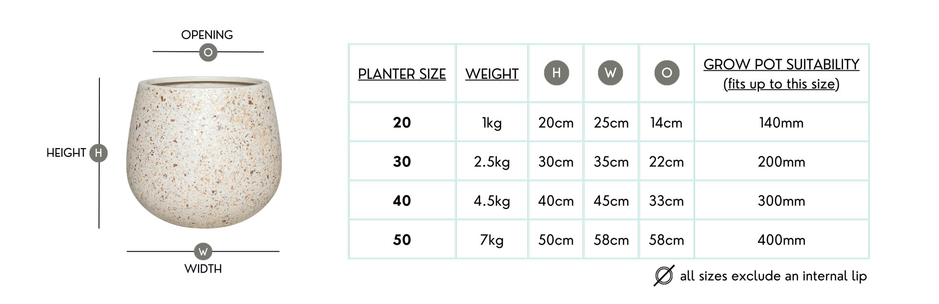 Non-Self Watering The stunning Vernazza Collection includes tabletop, floor-standing and hanger shapes and an be used for indoor or outdoor. It exudes elegance and class with its unique inclusion of crushed seashells.