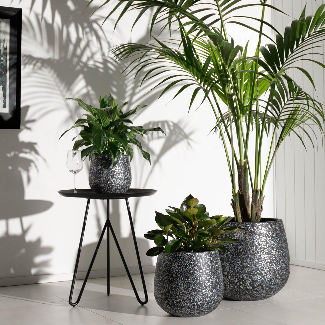 Non-Self Watering The stunning Vernazza Collection includes tabletop, floor-standing and hanger shapes and an be used for indoor or outdoor. It exudes elegance and class with its unique inclusion of crushed seashells.