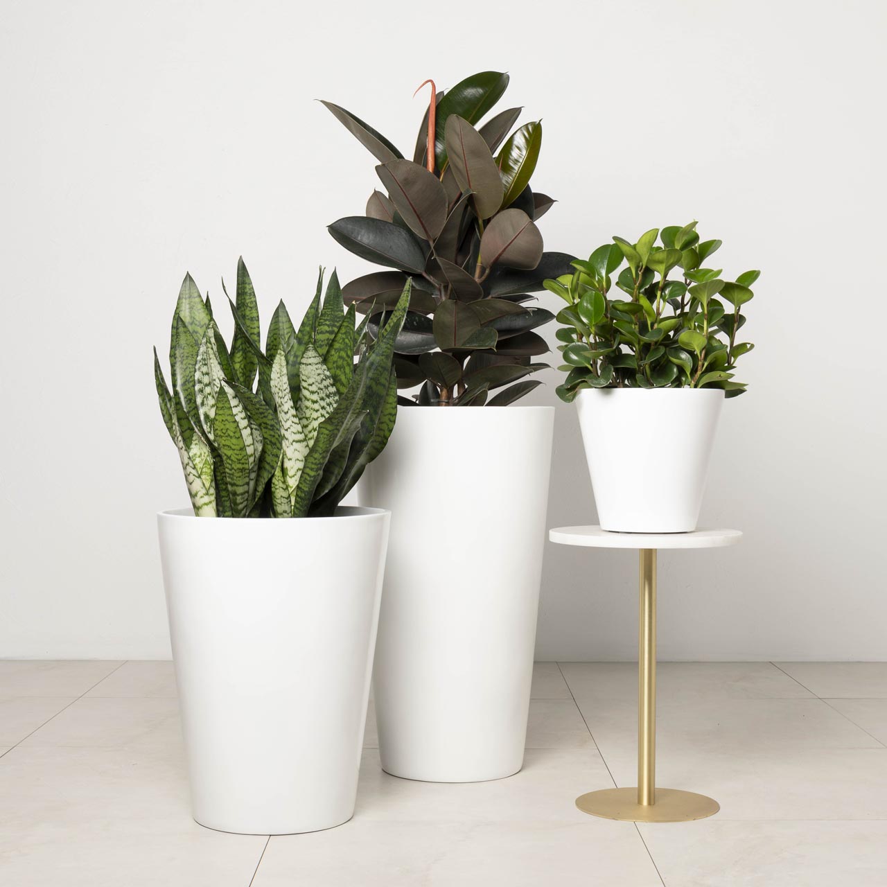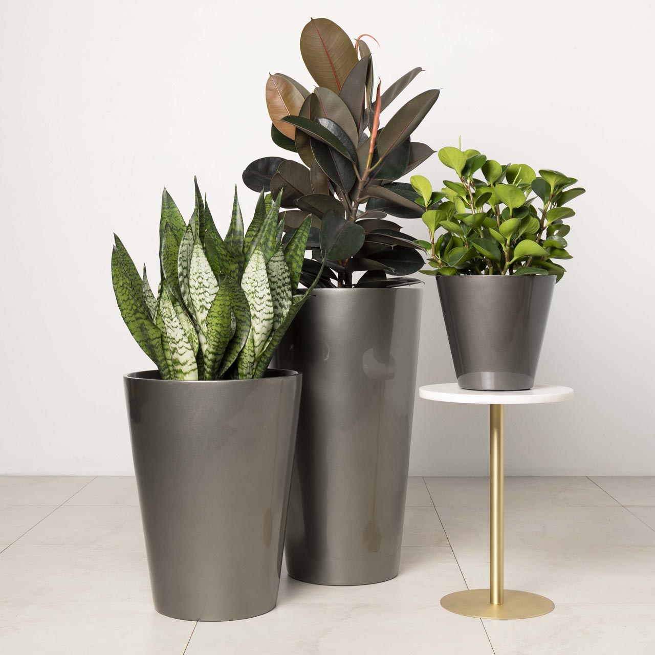This Collection comprises all of our popular tabletop, floor-standing, partition and hanging self-watering planters. Perfect for commercial spaces. These lightweight planters add sophistication and greenery to any space.