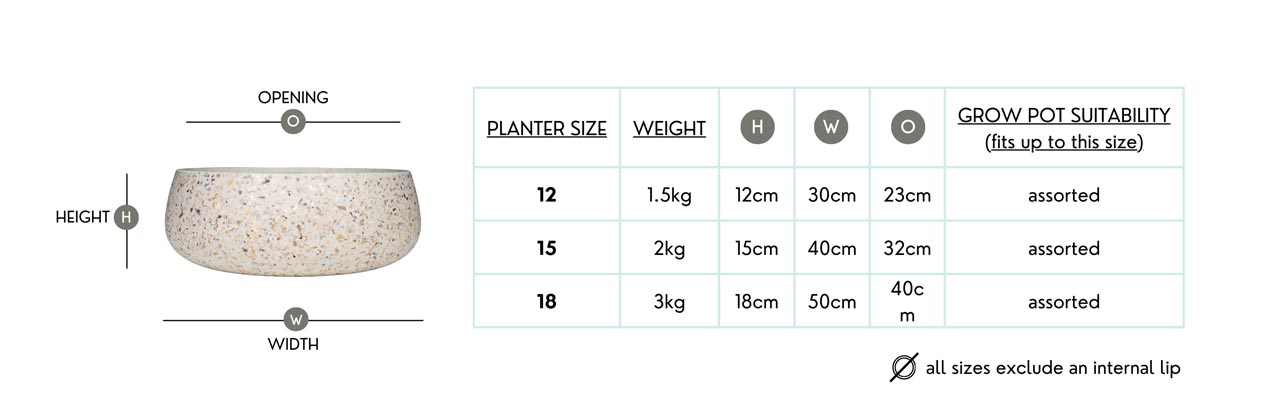 Non-Self Watering The stunning Vernazza Collection includes tabletop, floor-standing and hanger shapes and an be used for indoor or outdoor. It exudes elegance and class with its unique inclusion of crushed seashells.